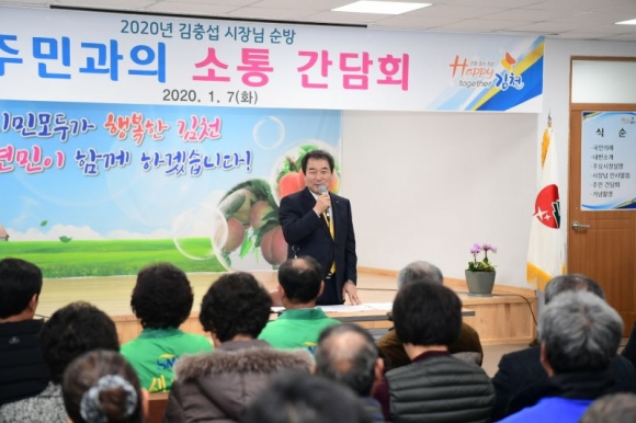 김충섭 시장은 “작년 한해는 민선 7기 출범 원년으로 미래 100년 김천 발전의 방향을 고민하고 밑그림을 그리는 해였다. 올해부터는 김천시 재도약을 위해 계획 중인 사업을 추진해 나가야 하는 때이다.”라며 주민들이 말씀해주신 소중한 의견들을 적극적이고 꼼꼼하게 검토할 것을 약속하고 김천발전을 위해 시민들이 힘을 모아 함께 해주기를 당부했다.