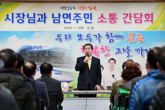 순방 첫날, 본격적인 주민 간담회에 앞서 2019년 한해 시정 성과와시민의식변화를 위한 “Happy together 김천” 운동과 김천산업단지 3단계 조성 및 조기분양, 공공산후조리원 건립 등 2020년 주요 시정에 대해 농소면과 남면 주민들에게 설명하며 시정에 대한 시민들의 이해도를 높이는 시간도 가졌다.