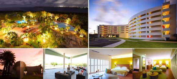 25평형 디럭스룸 46개와 스위트룸 7개, VIP룸 1개로 구성되어 있고 전 객실에서 바다와 골프코스를 조망할수 있으며 부대시설로는 수영장, 야외 선셋 바베큐장, 클럽하우스, 레스토랑 등이 있습니다.