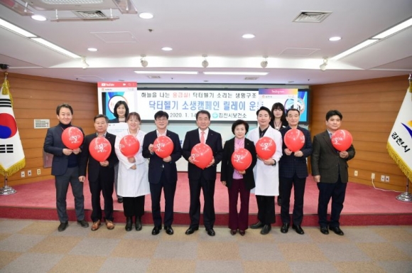김충섭 김천시장은 1.14.(화) 시청 2층 회의실에서 닥터헬기 소생 캠페인 릴레이 운동에 동참했다. 닥터헬기란 의료기기를 갖추고 전문 의료진이 탑승해 외상환자나 급성질환자 등 응급환자에 대한 처치·이송을 하는 ‘하늘의 응급실’로 불리는 응급의료 전용헬기를 말한다. 그러나, 최근 닥터헬기 이·착륙 시 발생하는 소음으로 많은 민원이 발생하고 있어 이에 대한 이해와 인식을 개선하기 위해 릴레이 운동을 실시하고 있다.