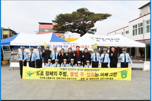 또한, 새마을교통봉사대원들은『Happy together 김천』친절·질서·청결 운동의 일환으로 김천이 교통 선진 도시로 자리매김 할 수 있도록 ‘불법 주·정차 근절’ 캠페인도 같이 실시하였다.