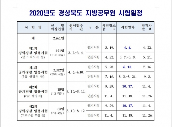 경북도, 2020년도 지방공무원 2,261명 선발한다!
