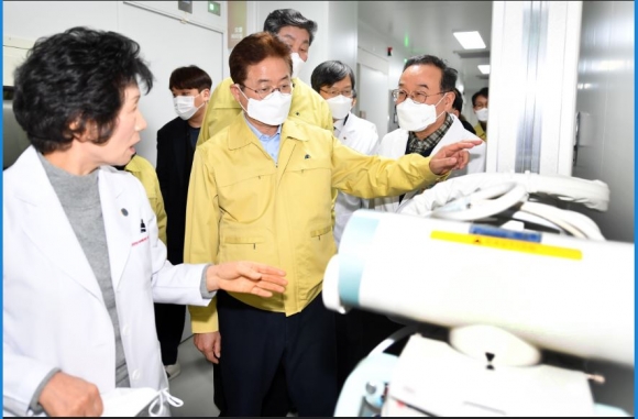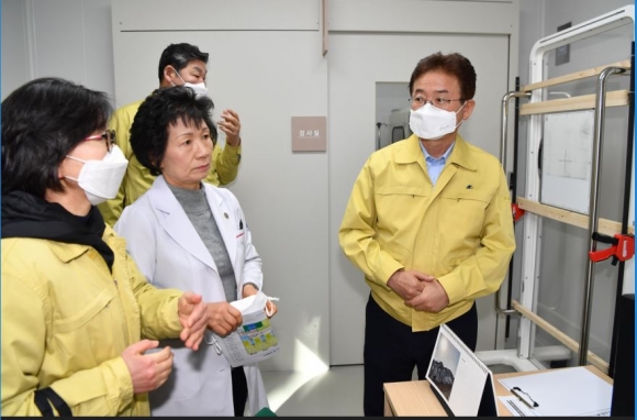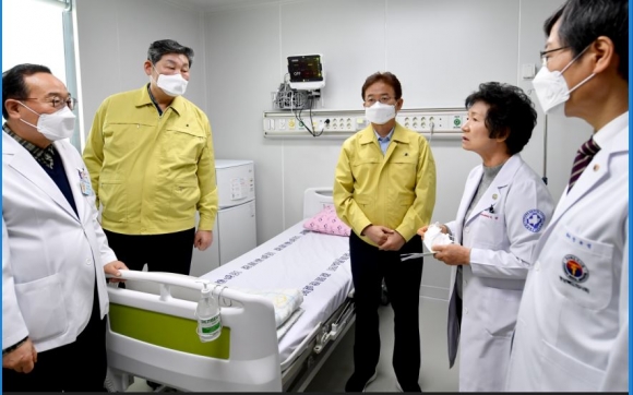경북도는 감염병 환자 격리치료를 위해 도내 2개 의료기관에 7실의 음압병상을 지정, 이 중 4실의 음압병상이 포항의료원에서 가동되고 있으며 이번 코로나 사태에 대해서도 만반의 준비를 갖추고 있다. ※ 음압병상이란? 병실 안팎의 기압차를 이용해 병실 내부의 공기가 외부로 나가지 못하도록 설계된 특수병상으로 세균과 바이러스가 퍼지는 것을 예방, 각종 감염병 환자를 치료하는 데 사용 이에 이철우 도지사는 6일 포항의료원을 방문했다. 이 지사는 음압병상 시설을 둘러보고, 격리병상 운영 현황과 선별진료소 가동 상황 등 신종코로나바이러스 감염병 대응 현장을 직접 챙기며 근무자들을 격려했다. 또한, 장유석 경상북도의사회장도 함께 현장을 찾아 “도내 단 1명의 확진자도 발생하지 않도록 의료기관과 적극 협력하여 대처하겠다”고 밝히고 도민을 위해 사용해 달라며 1회용 마스크 2만개를 경북도에 전달했다.