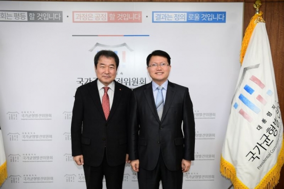 김충섭 시장은 지난 2월 6일 국가균형발전위원회 사무실에 직접 방문하여 진승호 기획단장과 김천시 주요사업을 건의하는 등 면담 시간을 가졌다.