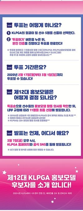 한국여자프로골프협회(이하 KLPGA)는 지난 17일(월)부터 ‘2020시즌 제12대 KLPGA 홍보모델’을 선정하기 위한 온라인 투표를 시작했다.