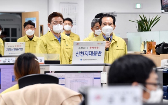 정세균 총리, 도청에서「코로나19 대응 점검 회의」 주재, 상황실 방문 근무자 격려