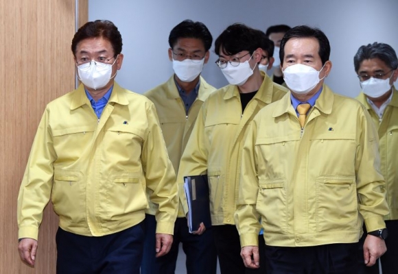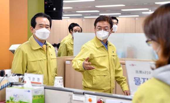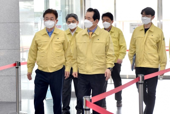정세균 총리는‘코로나19 대응 점검 회의’후 상황실을 방문해 근무자들을 격려하고 감사의 뜻을 전했다. 정총리는“잘하고 있다. 중앙정부에 도움이 필요하면 언제든 요청하면 적극 검토하겠다”고 화답했다.