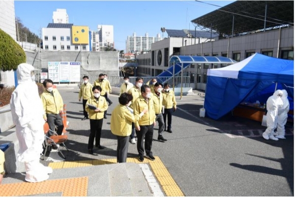 김충섭 김천시장은 코로나19의 확산 방지를 위해 밤낮없이 비상근무를 하고 있는 김천시청 전 직원들에게 격려의 메시지를 보내 위로했다. 김 시장은 공무원들에게“전국적인 코로나19 확산에 따라 연일 계속되는 비상근무로 어렵고 힘든 시기이지만 시민들의 소중한 생명과 건강을 위해 공직자로서 사명감을 가지고 임해 달라”고 당부했다. 한편, 김 시장은 지난 24일에도 보건소 선별진료소에서 방호복을 입고 의심환자들의 검체 채취를 하는 보건소 직원들을 격려차 방문한 바 있다.