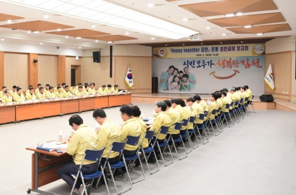 김천시는 지난 2월 18일 해피투게더 김천 운동 실천과제 보고회를 개최했다. 이날 보고회는 김천시 실과소·읍면동별로 시민과 함께 올 한해 중점적으로 추진할 실천과제를 발표하는 자리였다.