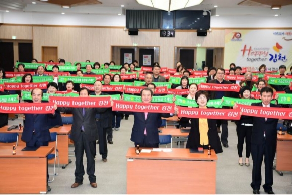 올해로 2년차를 맞이한『Happy together 김천』운동은 민선7기 출범과 함께 추진한 역점사업으로 김천을 전국에서 가장 친절하고, 가장 질서 있고, 가장 청결한 도시로 만들어 도시경쟁력을 강화하여 사람과 기업이 찾아오게 하자는 선진시민 의식 운동이다.