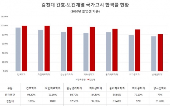 40여 년간 보건의료계열 특성화를 발판으로 지역사회와 국가를 위해 봉사하는 우수한 인재를 배출해 온 김천대(총장 윤옥현)는 2020년에도 어김없이 국가고시 합격률 전국 최고를 달성했다.