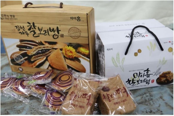 ‘김천호두 찰빵’은 전국 최대의 생산량을 자랑하는 김천 호두를 주재료로 한다. 김천 호두는 단백질과 불포화지방산을 다량 함유하여 그 자체로도 건강식인데, 정대표의 18년 제빵 노하우를 집약한‘김천호두 찰빵’으로 재탄생하여 식감과 맛을 더욱 향상시켰다. 흑돼지, 호두 등의 주재료는 모두 김천 농가와 직거래로 구입하여 신선하고 우수한 농산물을 선별해서 사용하고 있다. 마이홈제과(대표 김점식)의 ‘김천자두 찰보리빵’, ‘마이홈 찰보리떡’은 40년 전통의 김천 대표 명물 빵으로, 김천시농업기술센터 기술 지원을 통해 포장 디자인과 상품성을 향상시켰다.‘마이홈 찰보리떡’은 모든 식재료를 국내산으로만 사용 하면서, 밀가루를 넣지 않고 적당한 찰기와 특유의 촉촉함을 살려 소화가 잘되며, 건강하면서도 간편해 식사대용으로 먹기가 좋다. ‘김천자두 찰보리빵’은 김천 특산물인 자두와 포도를 섞어 만든 잼과 팥을 사용하였고 한 박스에 20개 구성으로 다양한 맛을 골라 먹을 수 있다. 100% 국내산 재료를 사용할 뿐 아니라 합리적인 가격으로 가성비 최고라는 소비자의 평을 받고 있으며, 네이버 스토어팜 입점으로 소비자들에게 더욱 편리하게 다가가고 있다. 서범석 김천시농업기술센터 소장은 “지역 축제 등을 통해 대중들에게 상품성을 인정받은 두 제과점은 빵 맛이 좋아 지역 농축산물 소비를 촉진하고 있다. 코로나19 방역을 위한 빵 기부를 꾸준히 실천하시는 김천 착한 제과점의 발전을 위해 함께 노력하겠다”고 당부했다. |