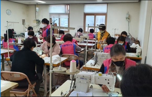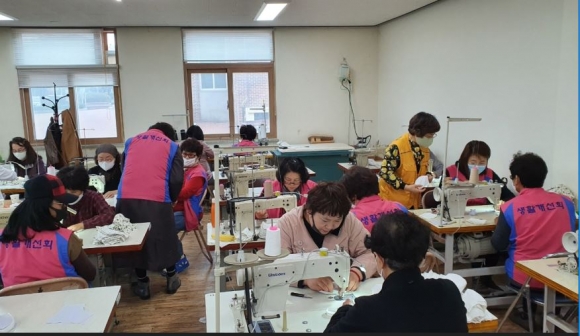 한국생활개선김천시연합회(회장 김경자)는 3월 27일 코로나19의 지역사회 감염 예방을 위해 김천시평생교육원 자원봉사센터에서 실시하는‘필터 교체 마스크 만들기’봉사활동에 동참했다. 이날 생활개선회원 15명은 다른 자원 봉사자들(한궁협의회 외 1)과 함께 개인 위생수칙을 준수하며 오전부터 늦은 오후까지 재봉틀, 손바느질, 제단과 보조 등 본인의 역량에 맞게 마스크 만들기에 힘을 보탰고, 준비해온 떡과 간식을 서로 나누며 위기에 더 강해지는 김천시민 의식을 고취시켰다 .