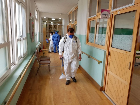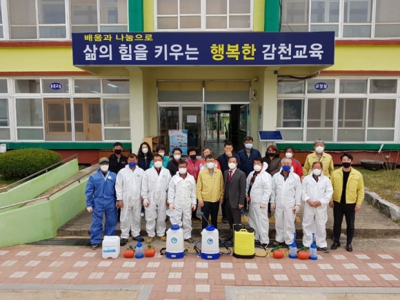□ 감천초등학교(교장 이기협)는 4월 1일 코로나 19로부터 학교를 안전하게 지키기 위해 감천면 주민자치위원회(위원장 김교문) 의 도움을 받아 학교 운동장, 놀이터, 학교 건물, 고당관(강당) 및 부속건물 대해여 일제히 방역소독을 실시하였다. □ 감천면 주민자치위원회 김교문 위원장은 “코로나 19로 인하여 학생들 배움의 터전인 초등학교에 학생들이 등교를 할 수 없게 되어 안타까운 마음이다. 우리 학생들이 안전하게 학교에 등교할 수 있도록 감천면 주민자치위원회가 최선을 다하여 예방활동에 힘을 보태겠다.”는 다짐을 피력하였다.
