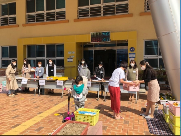 □ 율곡유치원(원장 장미야)은 4월 4일(토) 10:00~11:30까지 본원 앞마당에서 학부모들에게 놀이꾸러미를 배부하였다. □ 이번 배부는 코로나19 확산방지 및 예방을 위하여 연령별로 시간차를 두어 진행되었는데 학부모들과 유아들에게 모처럼 웃음을 안겨주는 계기가 되었다. □ 놀이꾸러미에는 훌라후프, 공, 줄넘기와 같은 신체표현 놀이자료, 손소독 티슈, 동화책 등으로 구성되었는데 유아의 신체·건강, 언어표현능력을 신장하기 위한 물품으로 가득 담겨 있었다. 특히 유아들이 놀이에 몰입할 수 있도록 놀이 방법을 소개하여 가정에서도 쉽게 활용할 수 있도록 하였다.
