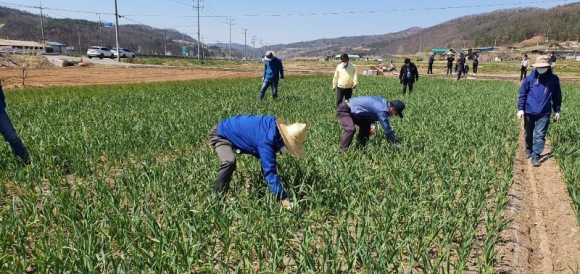 8일, 농축산유통국 소속 직원 20명 의성군 마늘농가에서 일손돕기 펼쳐 - - 4월~6월 본격적인 영농철이 시작되면 농촌일손돕기 운동 총력 방침