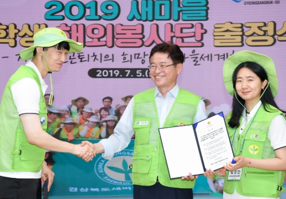 [밝은미래신문=뉴스팀]경상북도는 5일(금) 도청 다목적홀에서 이철우 도지사, 장동희 새마을 세계화재단 대표, 대학생 봉사단원 75명 등 80여명이 참석한 가운데 ‘2019년 경상북도 새마을 대학생 해외봉사단 출정식’을 가졌다.