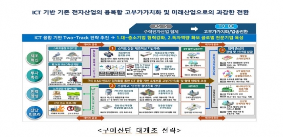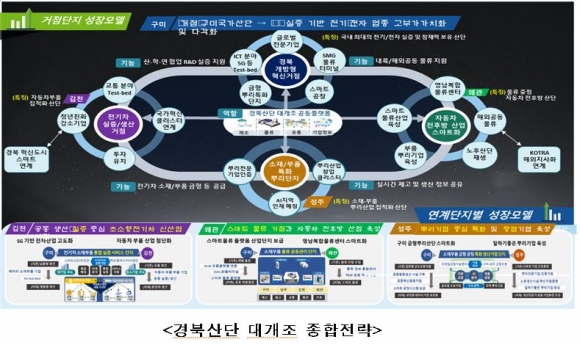 경북 산단 대개조사업은 구미 국가산단을 거점산단으로 인근의 김천 1산단과 김천 혁신도시, 칠곡(왜관)산단, 성주산단을 연계하여 ‘전자산업 부활 및 미래차 신산업 육성을 위한 경북 특화형 ICT 융합 소재부품 클러스터 구축'하는 사업이다