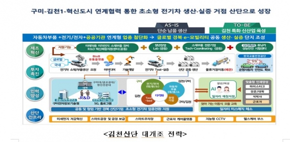 또한 구미와 김천을 연결해 전기차 실증 및 공동 생산, 구미와 왜관은 구미 SMG 물류터미널과 김천 물류단지를 연결한 스마트 물류 거점단지 조성, 구미와 성주는 구미 금형특화단지와 성주 뿌리산업을 연계한 경북 서부권 스마트 뿌리산업 벨트를 조성해 나간다는 계획이다
