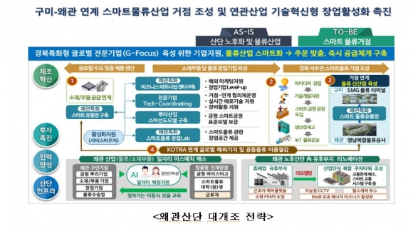 칠곡(왜관) 산단은 경북 소재부품 특화형 글로벌 전문기업 육성을 위한 스마트 물류산업 거점단지 조성 및 관련 산업 육성을 통해 G-Focus 소재부품 기업의 효율적 국내 물류 및 원활한 해외 진출이 가능하도록 할 계획이다
