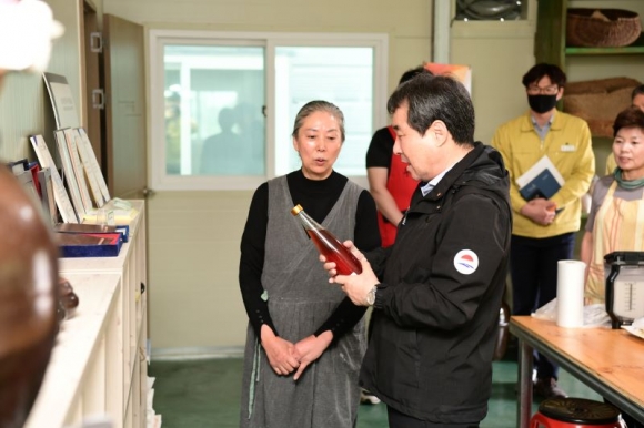 김충섭 김천시장은 8일(금) 구성면에 소재한 배금도가∙배금초에 방문하여 대표 김보홍(67), 정현선(62) 씨 부부의 안내 하에 사업장을 둘러보며 업체현황 및 제품 소개의 시간을 가졌다.