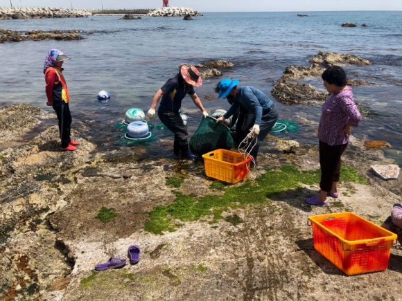 경주시가 관내 어장의 어족자원을 보호하기 위해 2020년도 첫 해적생물 구제 사업을 지난 14일 척사 어촌계 마을어장에서 실시했다. 시는 올해 관내 연안 어장에 서식하는 전복, 해삼, 미역 등을 보호하기 위해 불가사리류와 성게류 등 해적생물 16t을 구제하고 ㎏당 1,500원에 수매할 계획이다. 불가사리는 마을어장과 양식어장에 서식하면서 유용수산패류를 포식해 많은 피해를 주고 있고 성게는 미역이나 톳 등 갈조류를 대거 포식하면서 갯녹음 현상을 초래하는 등 심각한 부작용을 일으키고 있어 집중적인 구제가 필요하다. 수매한 해적생물은 퇴비로 재활용되거나 환경관련 법령에 저촉되지 않게 폐기 처리하게 된다. 시는 어족 자원의 막대한 피해를 줄이고 어장 환경을 보호하기 위해 해적생물 구제를 지속적으로 추진한다는 방침이다. 해양수산과 관계자는 “해적생물 구제사업 추진을 통해 어족 자원을 보호하고 수산자원을 번식시켜, 어민들의 소득증대 및 양식장 피해를 줄여나기기 위해 최선의 노력을 다 하겠다”고 밝혔다. |