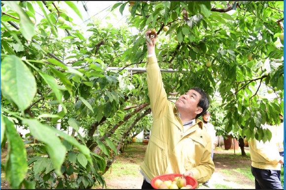 김충섭 김천시장은 지난 20일 개령면 시설자두농가와 모내기 중인 벼 농가를 방문해 직접 자두 수확과 이앙기에 탑승하여 영농현장의 애로사항을 청취하고 격려했다. 김천시는 명실공이 자두 주산지역으로 연동하우스를 활용한 가온시설을 통해 5월 중순부터 시설자두를 출하하기 시작하여 6월 중순 노지자두가 본격적으로 출하되기 전까지 수확하고 노지출하 자두보다 약 3배 이상의 농가소득을 올리고 있으며 현재 16호 6.1ha에서 재배하고 있다.