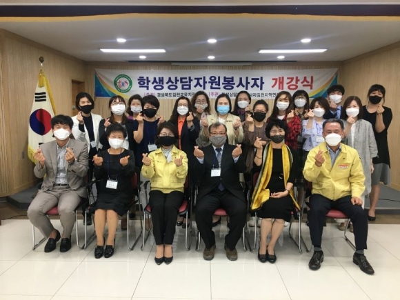 경상북도김천교육지원청(교육장 마숙자) Wee센터는 5월 21일(목) 김천교육지원청 대회의실에서 새 학년을 맞이하여 김천지역 학생상담자원봉사자연합회원 40여명이 참석한 가운데 개강식을 실시하였다.이번 개강식은 학생상담자원봉사자들이 학교 현장의 상담자로서 책임의식을 고양하고 적극적으로 상담활동에 임하기 위해 마련되었다. 또한 코로나19로 인해 혼란스러울 학생들의 교육 및 상담 계획을 공유하고 학교 상담이 나아가야 할 방향에 대해 논의하였다. 이후 학생상담자원봉사자연합회의 원활한 운영을 위한 사기 진작과 더불어 학생상담자원봉사자들의 상담 역량 강화를 위해 ‘학교상담의 이론과 실제’라는 주제로 강의가 진행되었다.