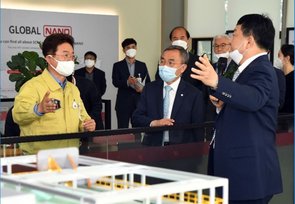 코로나19 사태를 뚫고 신형 탈질촉매 생산라인을 준공한 ㈜나노의 신동우 대표는 “한 개의 생산라인을 증설하면 100억원 정도의 매출이 예상되며 10명을 신규 고용할 수 있다. 향후 5년간 총 10개의 생산라인을 구축할 예정으로 적층형 탈질촉매 매출 1,000억원을 달성할 것으로 기대한다.”고 했다.