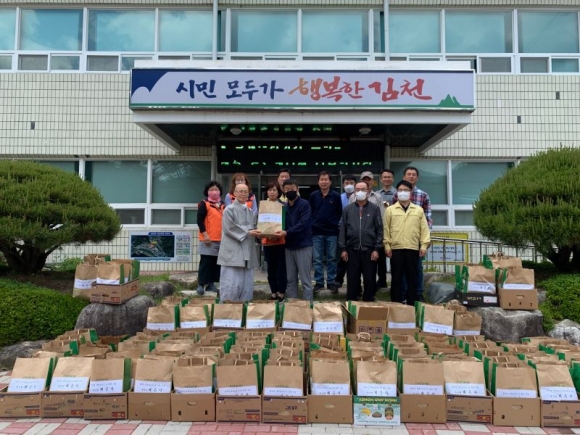 김천시 증산면(면장 김영욱)에 대한불교조계종 혜은사(주지 오상스님)에서 부처님 오신날 축하 나눔행사로 증산면 어르신들을 위해 바나나, 소면, 행주 등(150만원 상당)의 기탁물품을 전달했다. 혜은사에서는 매년 독거노인과 어려운 이웃을 위한 선행을 이어오면서 올해도 증산면에 거주하고 있는 어른들을 위한 132개의 기탁 물품 나눔을 실천하였다.