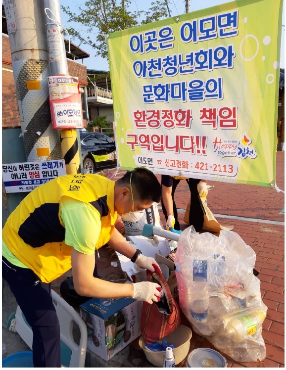 이번 청결활동은 그 동안 추진해온 범시민 환경정화활동을 활성화하고 지속적으로 추진하고자 아천청년회가 맡은 책임 청소구역을 중심으로 생활 쓰레기도 치우면서 투기 단속을 병행한 활동을 하였다.