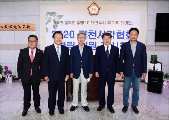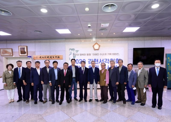 김천시의회(의장 김세운)는 6월 1일부터 8일까지 8일간 1층 의회 로비와 2층 복도에서 김천서각협회 창립 회원전 ‘나무와 함께하는 행복한 동행 - 이해인수녀 시 기획 테마전’을 개최한다고 밝혔다. 오픈식은 6월 1일 오후6시에 김세운 의장을 비롯한 의원들과 김충섭 김천시장, 박팔용·박보생 전 김천시장, 국가무형문화재 김각한 각자장, 김천서각협회 회원 등 100여명이 참석하여 성황을 이루며 의회 1층 로비에서 개최되었다.