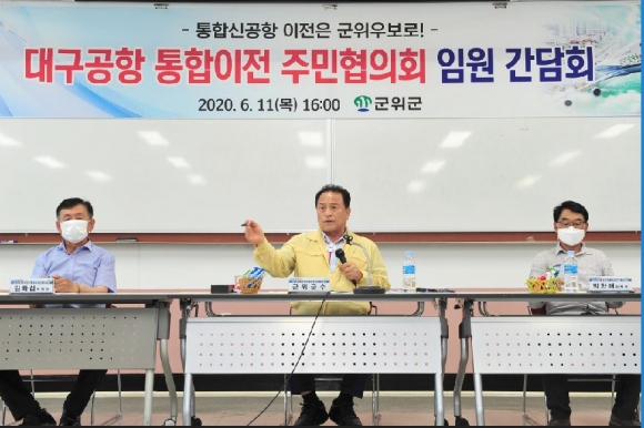 군위군(군수 김영만)은 11일, 군위 여성회관 회의실에서 ‘대구공항 통합이전 주민협의회’ 임원 간담회를 갖고 대구공항 통합이전사업에 대한 소통의 시간을 가졌다.