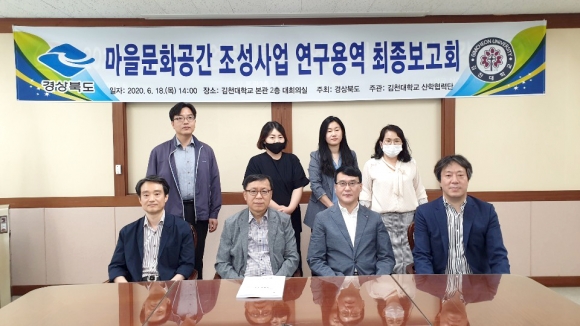 김천대학교(총장 윤옥현) 산학협력단(단장 백열선)이 6월 18(목) 오후 2시 김천대학교 본관 2층 대회의실에서 경상북도와 김천시 관계자 및 참여 연구진, 기타 유관기관 관계자 등이 참석한 가운데 『유휴시설 마을문화공간 조성』에 관한 연구용역의 최종 보고회를 개최했다.