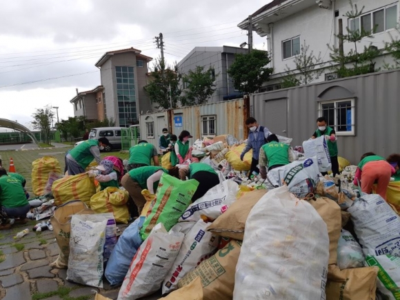 아포읍 새마을 남·여지도자 협의회(협의회장 박용복, 부녀회장 권경애)에서는 6. 26.(금) 오전 7시부터 아포읍사무소 주차장에서 새마을 남·여지도자 50여명이 참여한 가운데 Happy together운동의 “청결” 운동을 실천하기 위해 농약공병 수거 작업을 대대적으로 실시하였다. 아포읍 새마을협의회 박용복 회장은 “함부로 버려진 농약공병은 수질오염의 원인이자 자연경관 등 우리들의 건강한 삶을 해치는 원인이 된다“며 이에 새마을남녀 협의회가 나서서 공병수거작업을 실시하게 되었다고 말고 김천 해피투게더 청결운동에 적극적으로 앞장서겠다고 말했다. 이번 농약공병 수거작업에서는 농약 공병 1.8톤(1,800kg)을 수거하여 직접 판매한 수익금으로 불우한 이웃 등을 돕는데 사용할 계획이다. 이날 이정하 아포읍장은 “바쁜영농 시기에도 불구하고 참석해주신 새마을 남·여지도자 회원들에게 감사의 뜻을 전하고 앞으로도 깨끗한 아포읍을 만들기위해 김천시 역점 운동인 Happy together활동도 모두 동참하여 새로운 김천 만들기에 앞장서자”고 결의했다. |