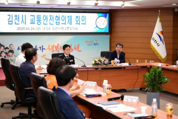 김천시(시장 김충섭)는 6월 26일(금) 오후 3시 김천시청 2층 회의실에서 교통사고 예방 및 감축을 위한 김천시 교통안전협의체 회의를 개최했다.