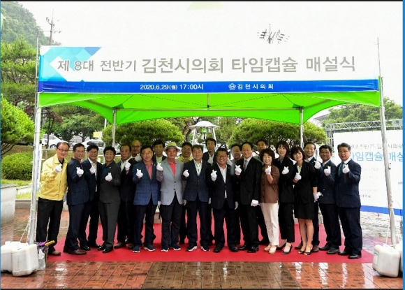이날 매설된 타임캡슐에는 제8대 전반기 김천시의회의 주요 기록과 업적 및 활동상, 의원들의 염원 및 역사자료, 의회사무국 직원들의 염원 등이 담겨 있으며 이를 후대에 전하여 더욱 발전적이고 진취적인 김천시의회가 되기위한 힘찬 도약을 다짐하고자 추진되었다.