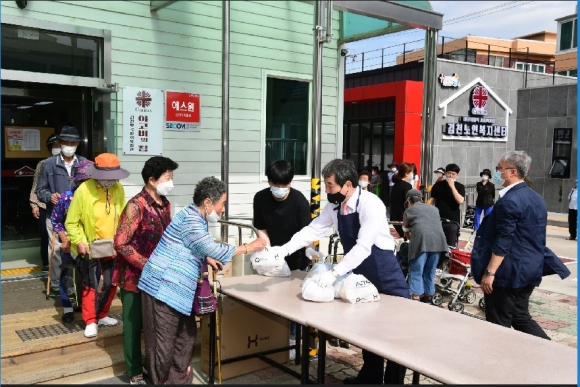 김충섭 시장은 “코로나 19로 인해 이용 어르신들이 무료급식소에서 식사를 하지 못하여 안타까우며 하루 속히 코로나 19가 종식되어서 일상생활을 누리는데 불편함이 없었으면 좋겠다”며 이용어르신들의 안전과 코로나 감염 예방에 철저한 주의를 당부하였다.