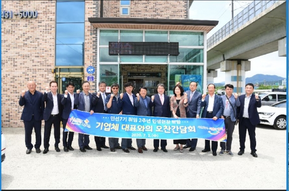 김충섭 김천시장은 이 자리에서 “연초에 시작된 코로나19 사태의 장기화로 인한 기업 운영의 많은 어려움 속에서도 기업을 지키고 지역 경제를 지키고자 불철주야 애쓰시는 대표님들의 노고에 늘 고마운 마음뿐이다.”면서 “우리시와 기업이 한 마음 한 뜻으로 이 어려운 난관을 슬기롭게 잘 헤쳐나갔으면 한다.”라고 당부했다.