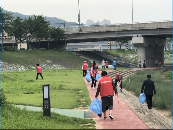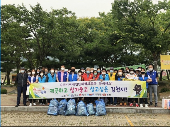 김천시 장애인단체(5개소)는 30일(화) 50여명의 회원들과 「Happy Together 김천」운동 실천을 위해 강변공원 일대 환경정화활동 캠페인을 전개했다. 이 날 캠페인은 한낮 무더위를 피해 이른 아침 약 한 시간 정도 진행되었으며, 코로나 바이러스 감염병 예방을 위해 마스크 착용 및 거리두기 등 예방수칙을 준수하며 진행되었다. 강변공원은 직지천 주변에 작은 숲과 오솔길, 놀이터 등이 조성되어 있어 지역주민들에게 휴식처가 되어주는 장소로 이번 환경정화활동을 통해 더욱 깨끗한 모습으로 변화되었다.