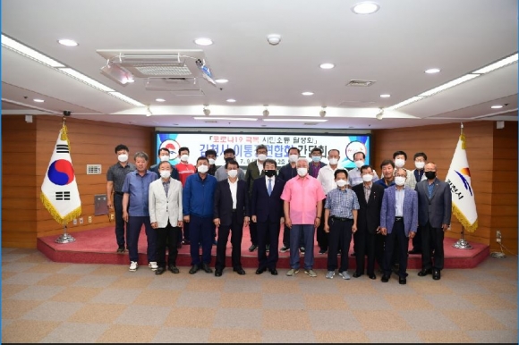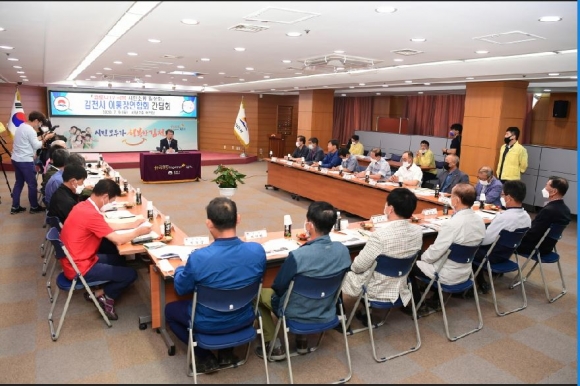 김천시(시장 김충섭)는 7월 9일, 시청 2층 회의실에서 최상동 이통장연합회장을 비롯한 22개 읍면동 이통장협의회장들이 참석한 가운데 코로나 극복을 위한 간담회를 개최했다.