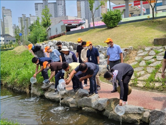 한국도로공사 직원 20여명 석정천 정화활동, 미꾸리, 버들치 방류 활동 실시