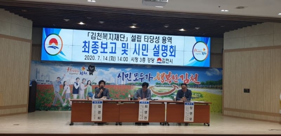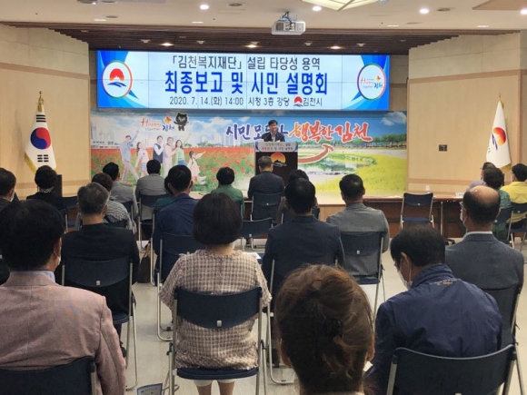 김천시는 지난 14일 시청 3층 강당에서 김천복지재단 설립 타당성 연구용역 최종 보고 및 시민 설명회를 시민 누구나 참여할 수 있는 열린장을 마련하여 성황리에 개최 했다.
