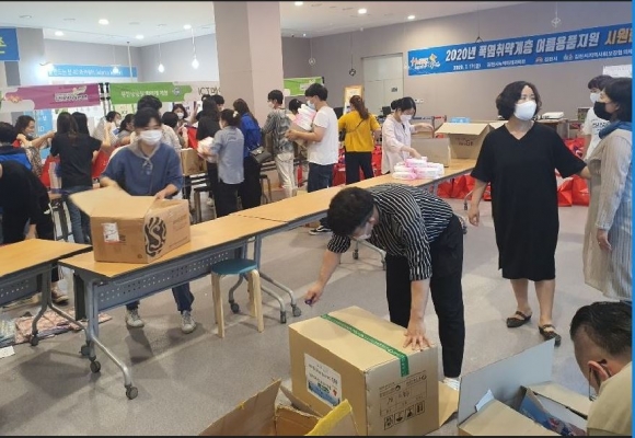 김천시지역사회보장협의체(위원장 김충섭, 공동위원장 배수향)는 지난 17일 김천녹색미래과학관에서 지역의 저소득 폭염취약계층을 위한“시원한 여름나기”사업 물품꾸러미를 제작·배부했다고 전했다. “시원한 여름나기”사업은 경북사회복지공동모금회와 경북지역사회보장협의체가 공동 기획한 사업으로 저소득 폭염취약계층 320가구에 폭염을 대비한 여름나기용품을 지원해주고자 추진하게 되었다. 여름나기 용품은 인견이불, 손선풍기, 쿨스카프 등 10만원 상당의 물품으로 구성되어 있으며, 이날 물품전달을 위해 김천시지역사회보장협의체와 지역 사회복지기관 종사자들이 참여하여 함께 물품꾸러미를 직접 포장하고 각 가정으로 배부하였다.