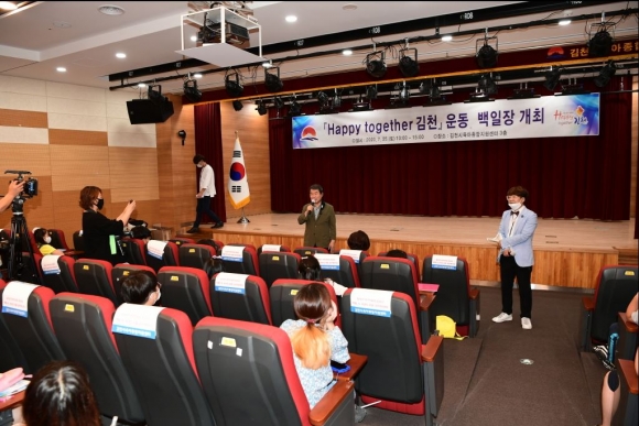 김천시는「Happy together 김천」운동의 범시민 실천 동참과 학생들의 참여를 위해 지난 7월 25일 초·중·고등학생을 대상으로 제1회「Happy together 김천」운동 백일장(이하 해피투게더 김천 백일장)을 개최했다.이번 백일장은「Happy together 김천」운동의 친절, 질서, 청결의 실천 및 동참과 관련 된 내용을 주제로 서식에 상관없이 참가생들의 자유로운 생각과 의견을 작품으로 출품했으며, 입상자는 심사를 거쳐 8월 중 김천시청 홈페이지를 통해 발표한다. 입상자는 초·중·고등부별 각 최우수상 1명, 우수상 2명, 장려상 3명을 선정하여 김천시장상을 수여하고 부상으로 김천사랑상품권을 시상할 계획이다.
