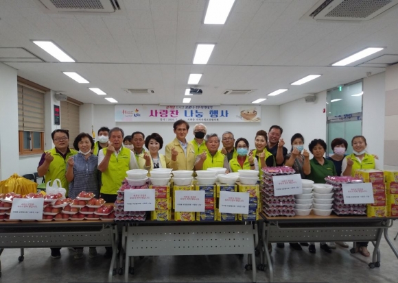 지좌동 지역사회보장협의체는 28일 독거노인과 취약계층 등 30가구를 대상으로 『사랑찬 삼계탕 나눔』봉사를 실시했다. 이번 삼계탕 나눔 봉사는 무더위와 코로나19의 장기화로 심신이 지쳐있는 독거노인과 취약계층 주민에게 건강한 여름나기에 도움을 주고자 삼계탕, 과일, 계란, 컵라면 등을 준비해 복지통장과 함께 전달하였으며 심리적, 정서적 지지로 주민들의 안위도 살피는 기회가 되었다.