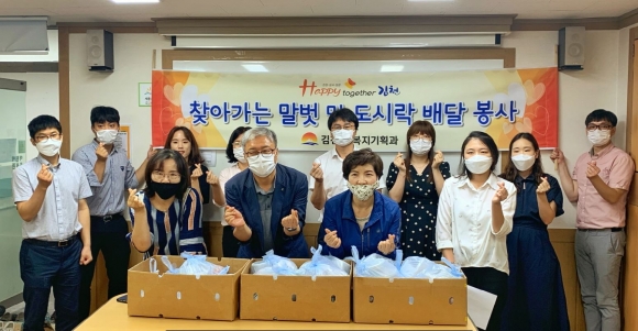김천시 복지기획과 직원들은 7. 29.(수) 10시부터 홀몸, 장애, 질환 등 거동이 불편한 저소득 가구 22세대를 방문하여 도시락을 배달하고 안부를 확인하는 등 하절기 소외계층 온정 나눔을 실천했다. 봉사활동에 참여한 복지기획과 직원들은 “어려운 이웃에게 온정의 도시락을 전달하는 나눔 활동에 동참할 수 있게 되어 기쁘고, 앞으로도 복지 사각지대를 발굴하는 등 다양한 나눔문화가 확산될 수 있도록 적극 동참하겠다.”고 말했다.