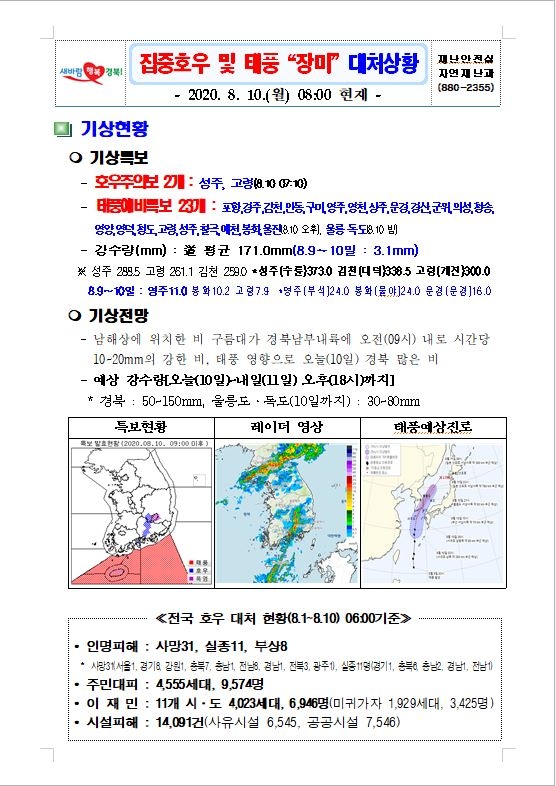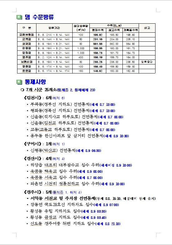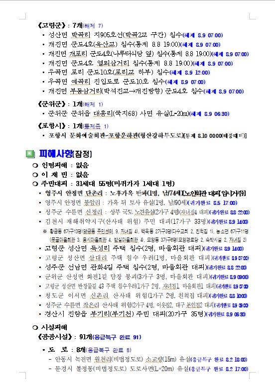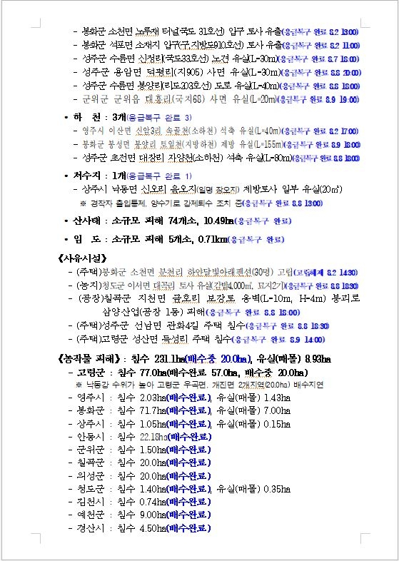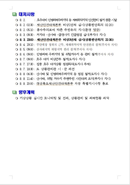 | 집중호우 및 태풍 대처상황 |