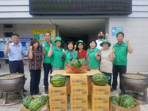 김천시 평화남산동 새마을 협의회(협의회장 신광식, 부녀회장 김이경) 회원 들은 지난 13일 다가오는 말복을 맞이하여 관내 경로당 10개소를 방문하여 회원들이 정성으로 마련한 국수 면과 수박을 전달하였다. 이 날 행사는 연일 지속되는 장마와 습하고 더운 여름 날씨에 지친 경로당 어르신들을 위해 피서 음식들을 전달하는 한편, 직접 인사를 드리며 올 여름도 건강하게 보내시길 바라는 따뜻한 마음도 함께 나눈 시간이었다.신광식, 김이경 회장을 비롯한 회원들은 “올해 유난히 장마가 길고 비도 많이 와서 어르신들이 생활하기 많이 지치고 힘드셨을 것 같다. 수박과 국수 면을 준비했는데 맛있게 드시고 힘내서 올 여름 무탈하게 보내시길 바란다.”고 전했다.