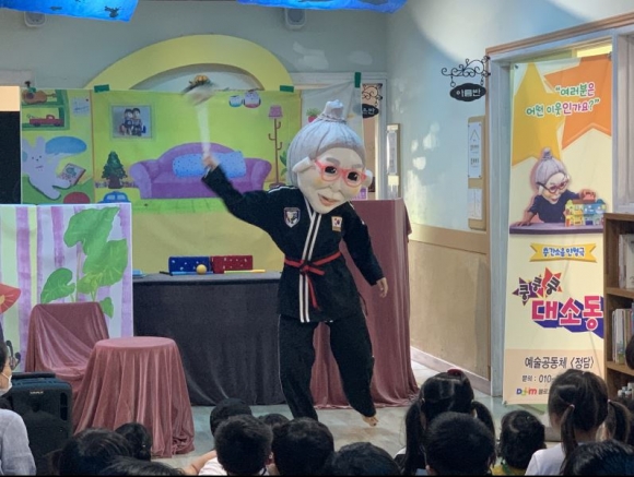 김천시립도서관(관장 김영욱)은 2020년 <공공도서관 장애인 독서문화프로그램> 수행기관으로 선정되어, 장애어린이를 대상으로 찾아가는 독서문화프로그램을 성공적으로 마쳤다고 밝혔다. 2020년 공공도서관 장애인 독서문화프로그램은 장애아동의 독서문화 진흥과 정보‧문화 격차 해소를 위해 국립장애인도서관이 주최하는 공모사업으로, 지난 5월부터 8월까지 총12차에 걸쳐 운영되었다. 한국발달문화원 김천지회 유월옥 전문강사와 사서가 함께 사회복지법인 효동어린이집을 방문하여, 발달장애 어린이들의 큰 관심 속에 책읽기 수업 및 독후활동 프로그램들을 진행했다. 특히 8월 18일에는 예술공동체‘정담’을 초청, <쿵쿵쿵 대소동> 인형극 공연을 개최하여 어린이들에게 큰 호응을 얻었다.